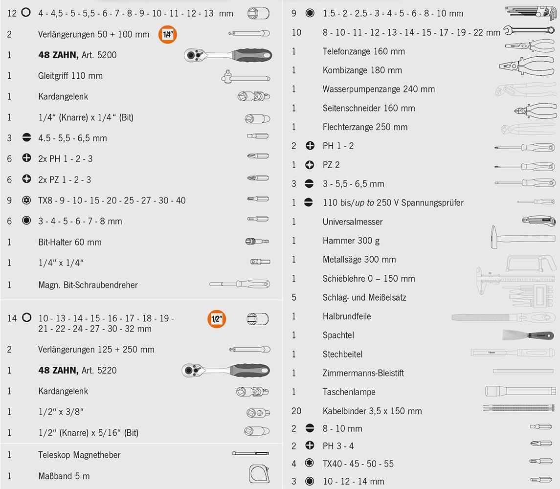 PROFICRAFT Werkzeugkoffer UNIVERSAL 149tlg. (6,3 1/4"+12,5 1/2")